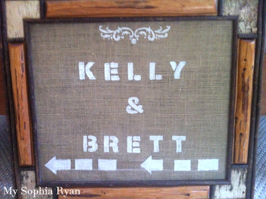 Originally, my mom made this sign for our wedding we had here in Mammoth. She stenciled the letters of our names on a piece burlap, painted the letters white and framed it.