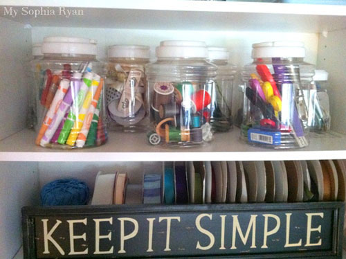 Do you ever feel like you need to organize your crafts? Do you think about what it would be like to have one place where you could put all your ribbon, wrapping, scissors, glue, stamps, paper, paint, and other craft items? This is how I used to feel.