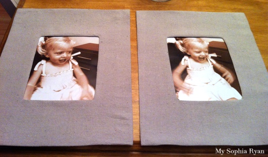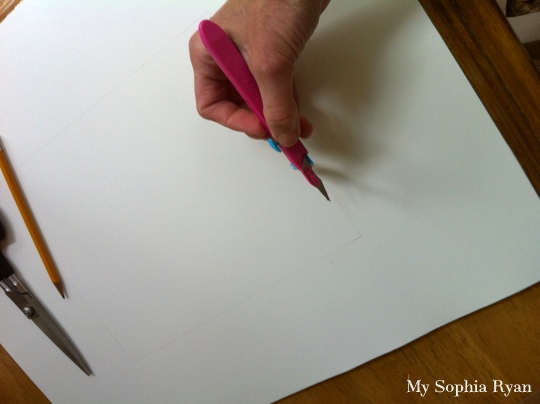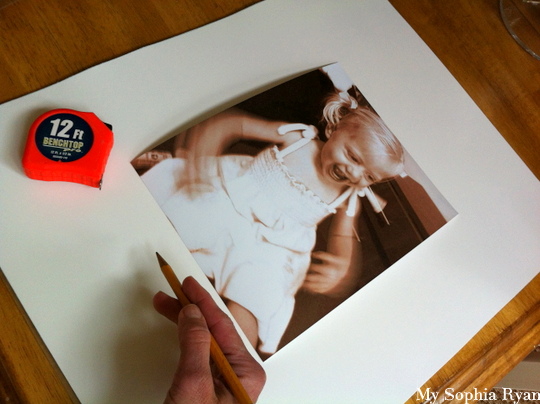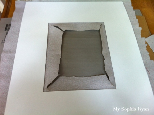 Using poster board, the 8×10 photo, and a tape measure I created a rectangle opening slightly smaller than the size of the photo.